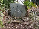 現在の京王線は、この付近の尾根を掘割にして高尾山口に向かうが、御陵線は台地の縁を谷沿いに走っていたようである。尾根の北側に一段低い平坦地が残っていたので、そこが御陵線の敷地であることの痕跡を探しに降りてみることにした。よく見ると、敷地の中にコンクリートの杭が線状に点在しており、線路敷の境界杭に間違いなさそうである。