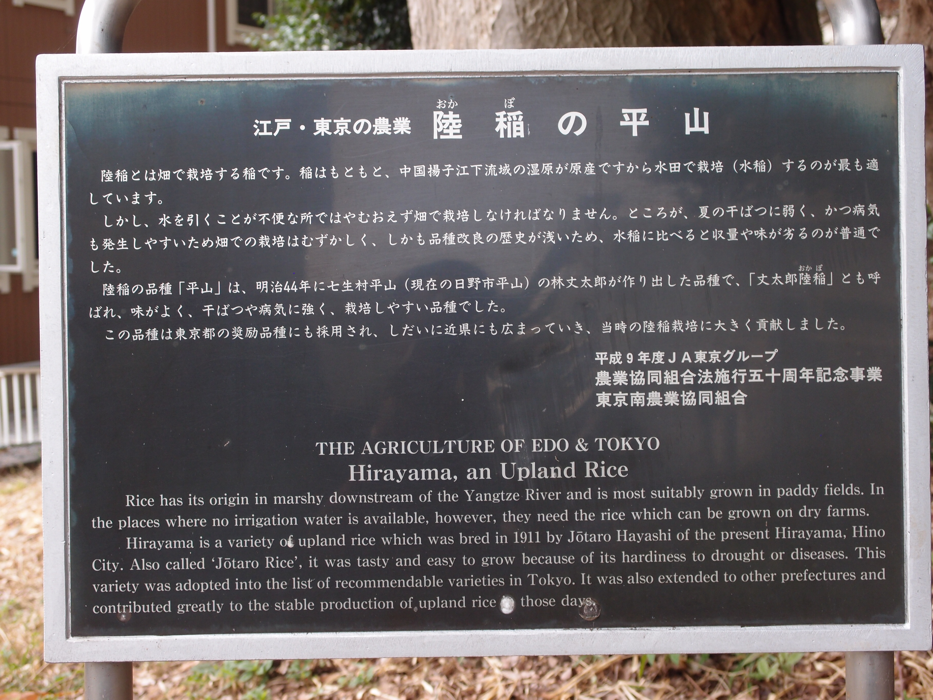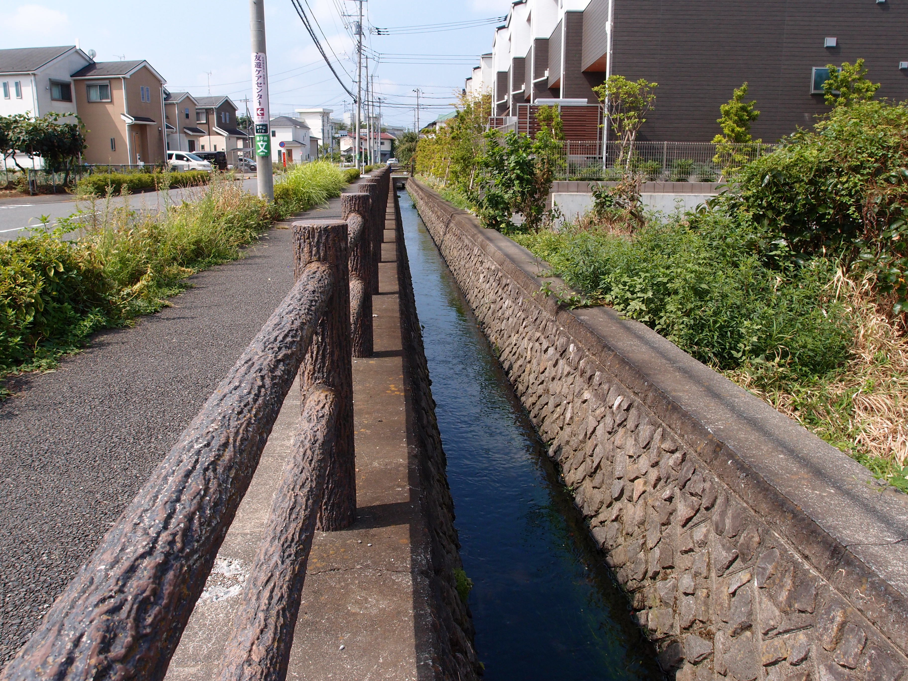日野市南西部(旧七生村の平山地区)の段丘崖沿いには、今も豊富な湧水があり、水路には清らかな水が流れている。明治期にはこの水を利用して沖積に水田が広がっており、水路には水車が架かっていました。
