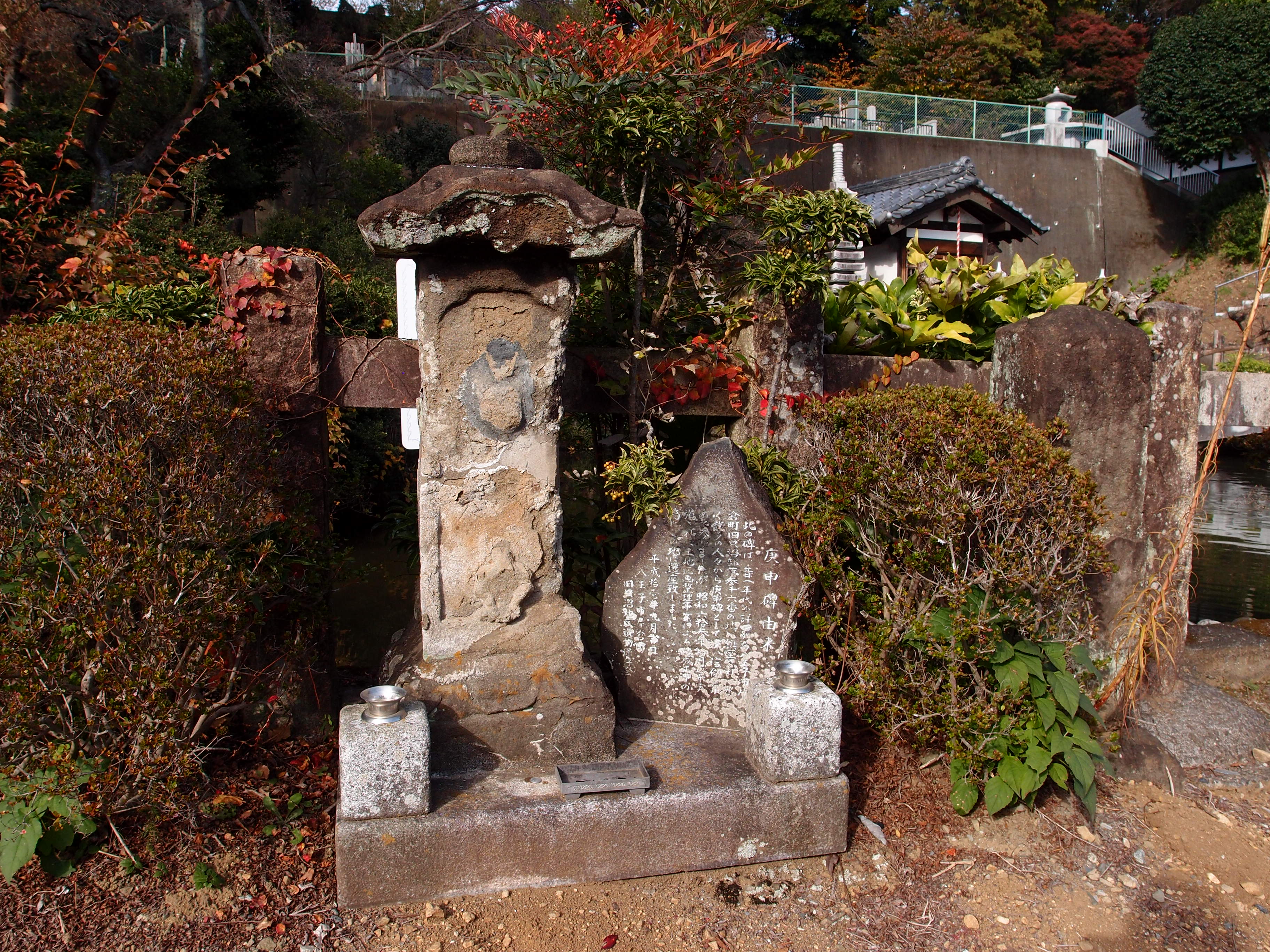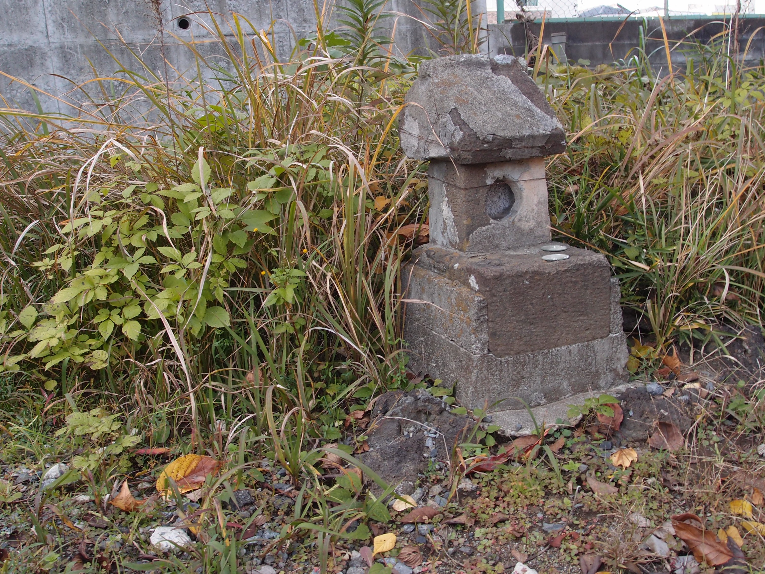 共に古道の都道506号線と市道243の交差点近くの月見橋の袂には地蔵尊が祀られている。