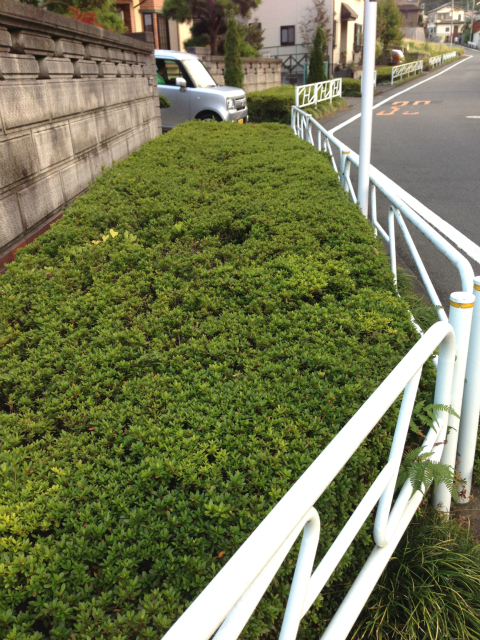 途中、ガードレールの内側で歩道と思しき所に植え込みがあり、どこを歩けばいいのか?と頭を悩ませながら、車道の隅を小さくなって歩く参加者。