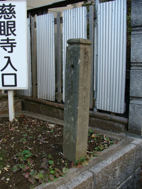 団地を抜けたところで、いかにも古そうな石の柱?を発見。後ろに慈限寺(じげんじ)という案内板が目につく。