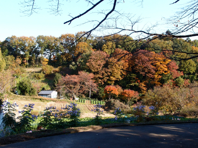 この広い通りを平山城址公園駅とは反対方向の南へ下る。団地の頂部残された雑木林も鮮やかな赤い色に染まっていた。