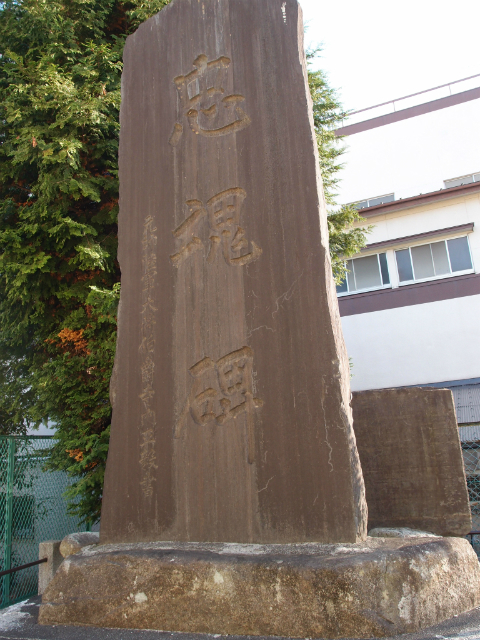 北へ向かう道の東側は柚木中央小学校だが、校庭の西隅の外側には大きな忠魂碑が建っている。忠魂碑には明治から昭和の太平洋戦争までに戦死した地元の人達の名前が刻まれている。小学校の脇の道を永林寺に向かう。学校入口にある大きな桜の紅葉を見ながら突き当たりまで行くと、左手の道に永林寺の赤い総門が目に入る。