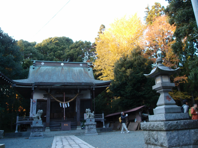 南陽台の住宅の中を抜け、たところに滝山城の武相十郡領主、大石遠江守(定久)が滝山城の鎮守(丹木町にある御嶽神社)の一体を天文二年(1533年)にここに崇祀したと伝えられる下柚木神社についた。下柚木神社は、下柚木地区のの鎮守となっており、境内は広く本殿は一段高いところにあった。その本殿の脇には期限2600年を記念して植えられた杉の木が育っており、八王子の子安神社から分祀された金毘羅神宮と日枝神社の祠が並んでいた。