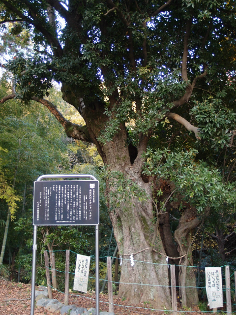 境内のご神木は以前、大きな松があったが台風で倒れたため、古木のスダジイに神木の注連縄がかけられた。このスダジイも昭和60年の大雪で先が折れ、今は朽ちて倒れた枯木から若木が伸びている。