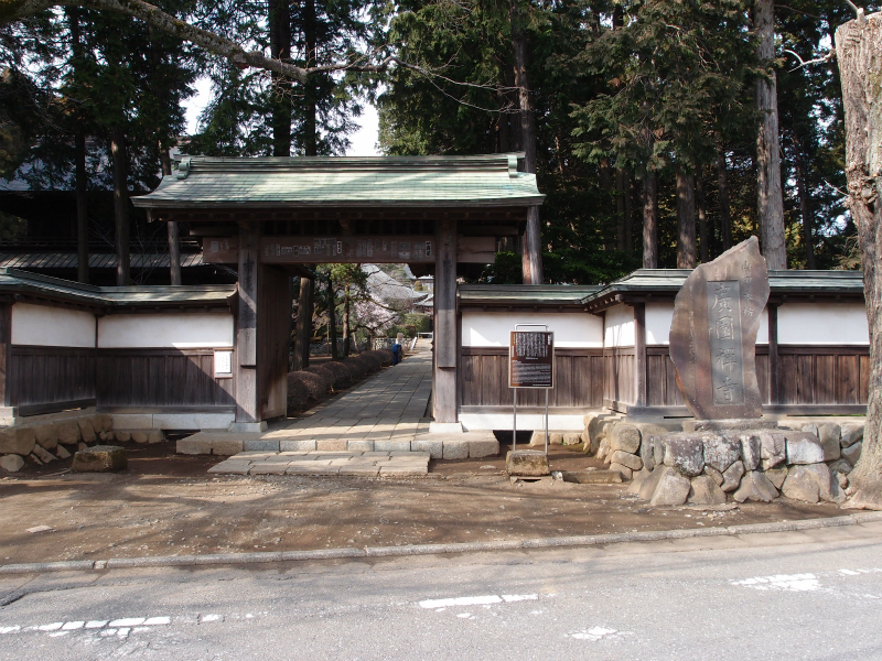 山門 - 三間一戸、二重門、入母屋造で、室町時代から伝わる寺額が掛けられている。