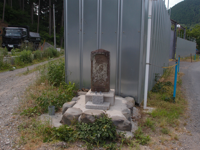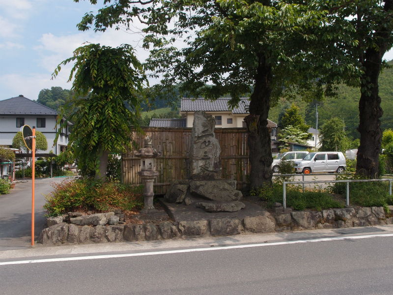 次のバスのまで30分ほどになったので、この辺りでバスに乗ることを考えたが、待ち時間がかなりあるので、夕やけ小焼けの里まで歩くことにし、少し速足で力石の集落を通過した。宮の下のバス停を過ぎると夕やけ小焼けの里の建物が近づき、右手には中村雨紅の墓の案内が見えたが、時間がないので夕やけ小焼けのバス停のある駐車場まで急いだ。