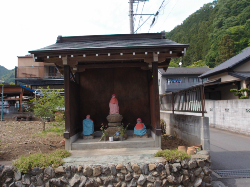 大久保のバス停を過ぎ、しばらく行くと左手に北浅川を渡る旧道が見えたので、この橋を渡り古い集落と旧道を行くことにした。この道にも地蔵尊や庚申塔があった。この集落が大久保である。