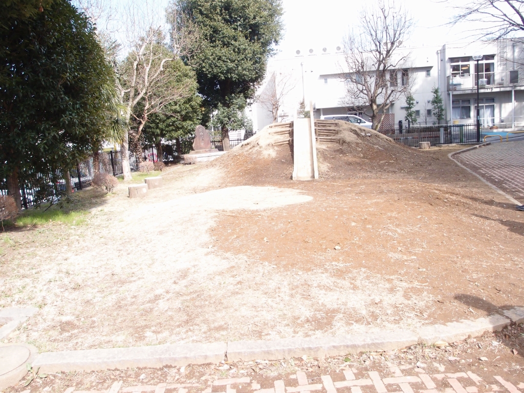 住居は直径5㍍ほどの範囲に扁平な川原石を敷いたもので、中央に直径60㌢ほどの炉があり、土器が埋められていました。現在は長房児童館北側に埋め戻されていますが、広場として約1,200平方㍍が保存され、東側に石碑が建っています。