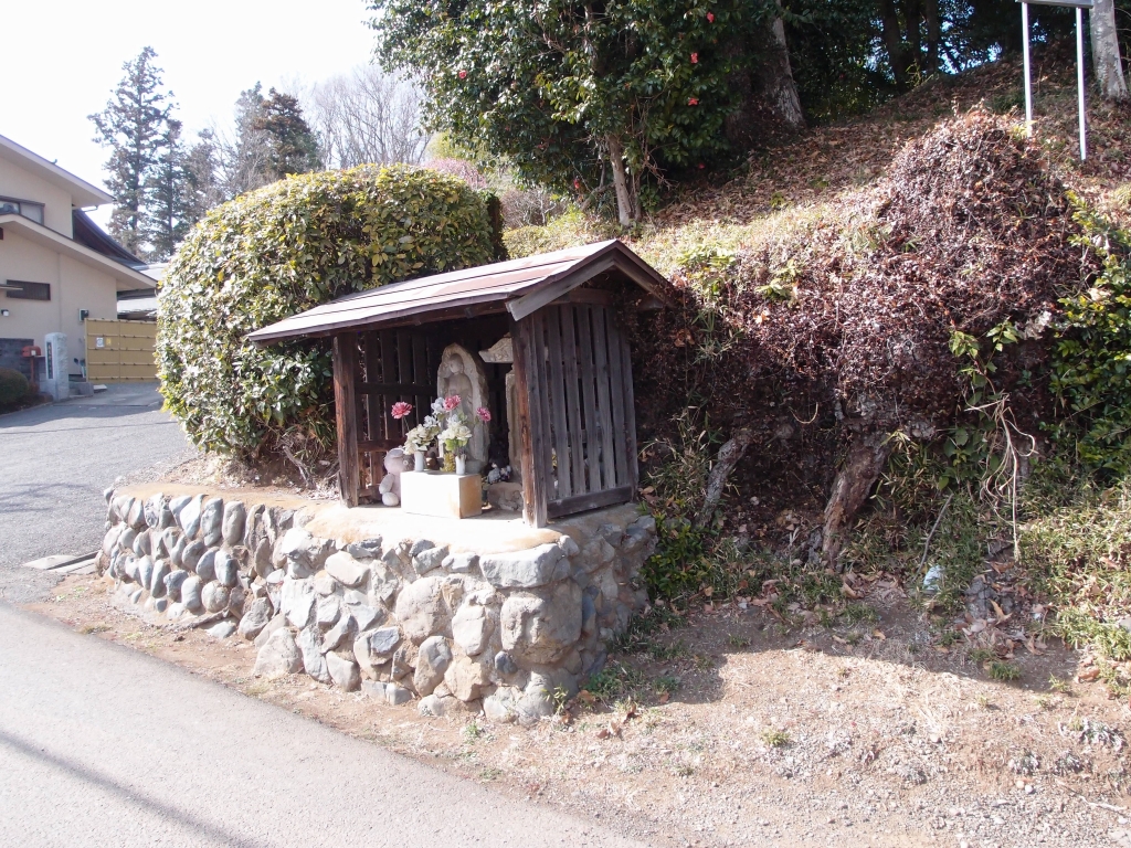 元八王子一区から城山川を渡り、月夜みね丘陵の途中に坂中心地に四角四面の不動堂がある。この付近滝、が落ちて美しい水を村民ののどをうるほしていたので、雨ごいにはこの水を神仏に上げてお祈りしたものである。不動様の外に稲荷と天満宮の二つの石詞がある。この前の道を不動坂といぅ。北条氏照居城以前のものと思う歴史あり、永禄十二年(二二二〉廿里合戦のおり、滝山勢が氏照の老臣横地監物ら三百余騎雑兵二千余人がこの不動坂を通過したとあり、然れりとすれば随分古い事になる。滝の不動様は女性であるという。