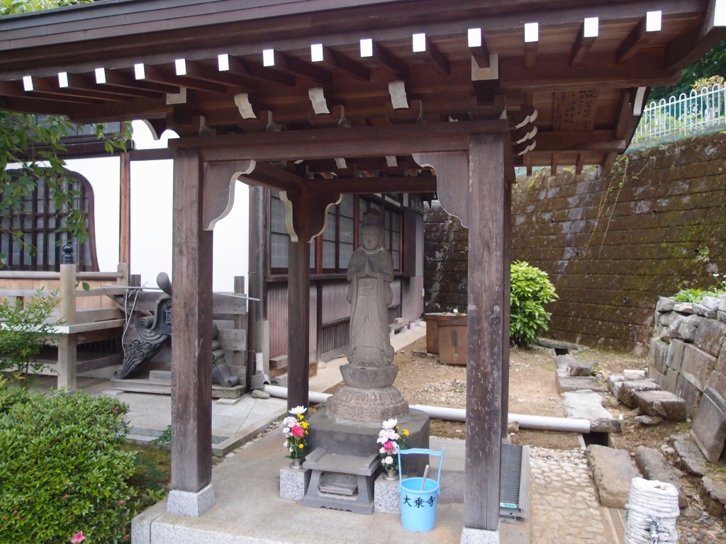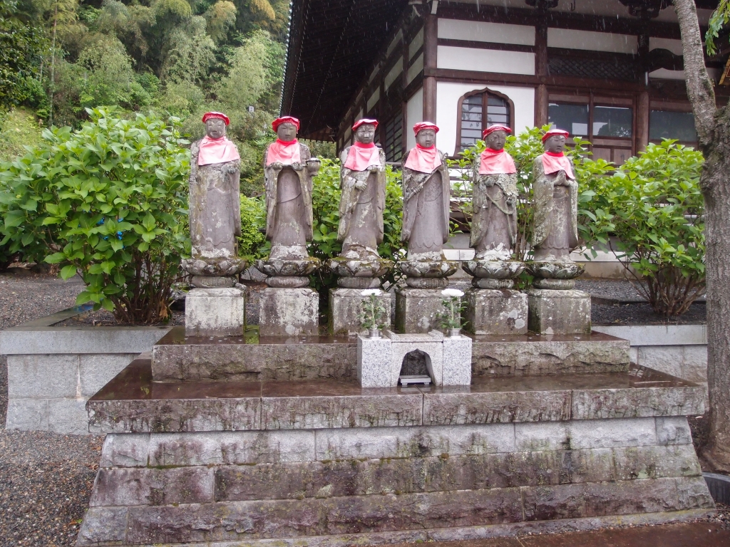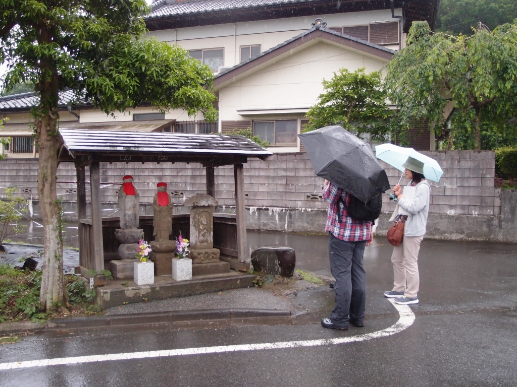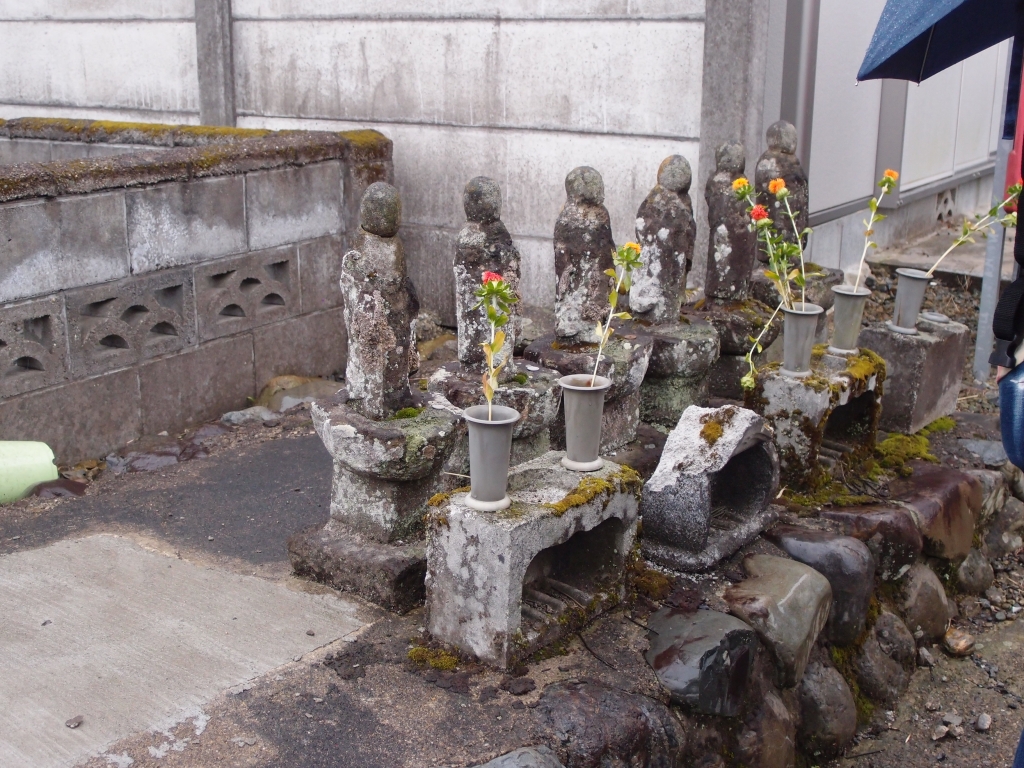 不動院の入口に小さな六地蔵と並んで建つ。「不動院の住職として勤めていた僧が何かの不都合なことを犯し処刑された。この僧の霊を慰めるために信心深い滝の女衆が建てたのがこの地蔵様である。文久四年(一八六一)為宥同菩提 明治三年(一八八〇)八月 建女念仏講中と一番端に建つ像。