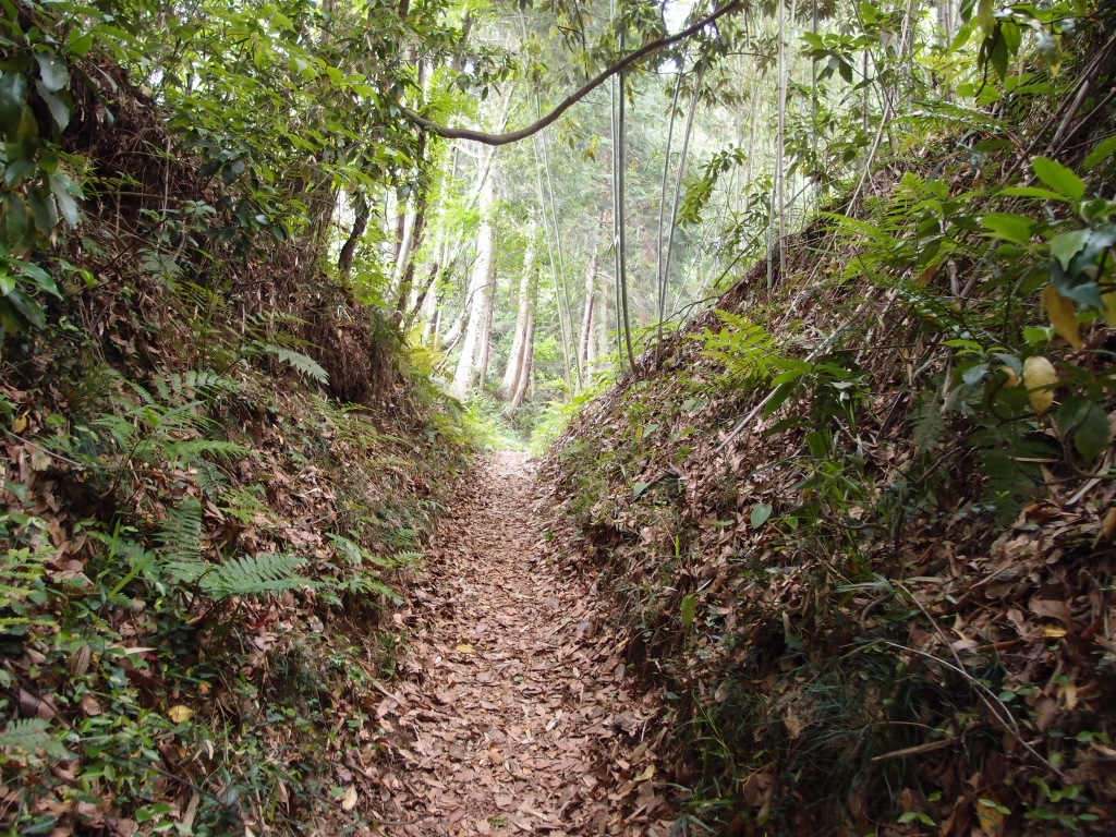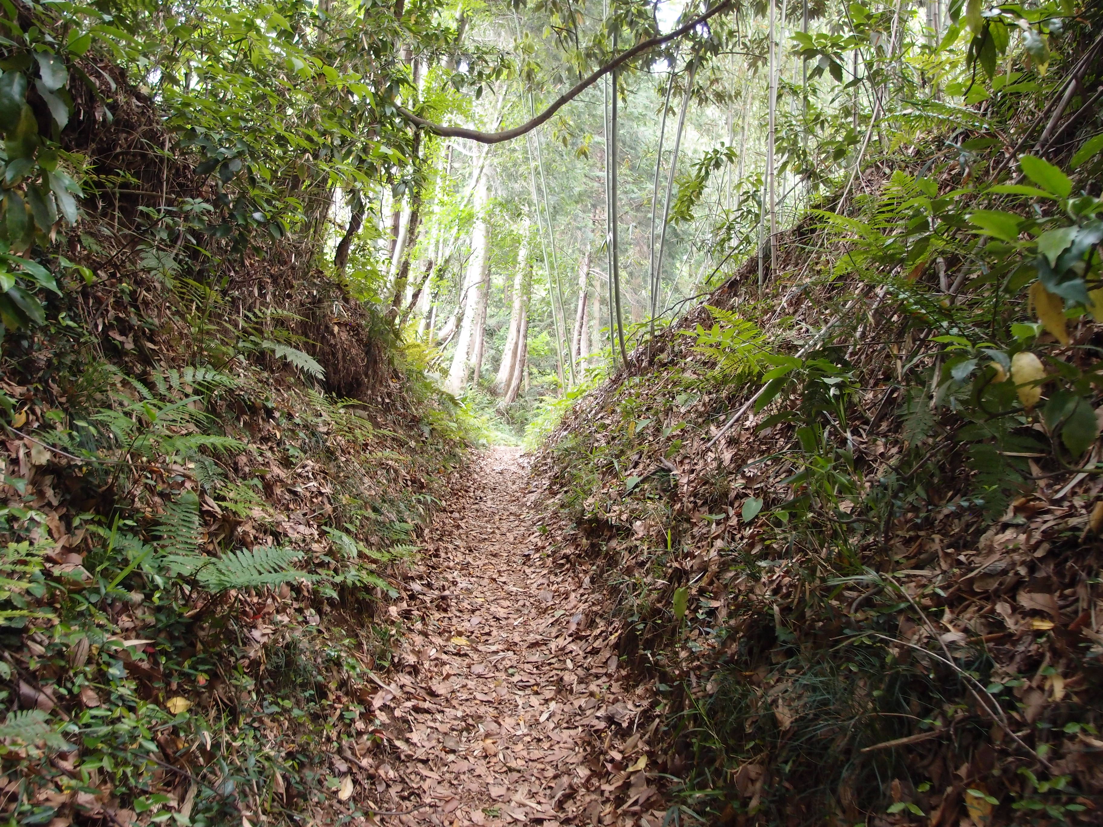 かな穴の入口のところから南の山に「十二曲りの山道」を登ると頂上に着き、宮下・留所の一部が見えるが、もともとこの道は高月圓通寺を中心とした修験道の入達の道であった。