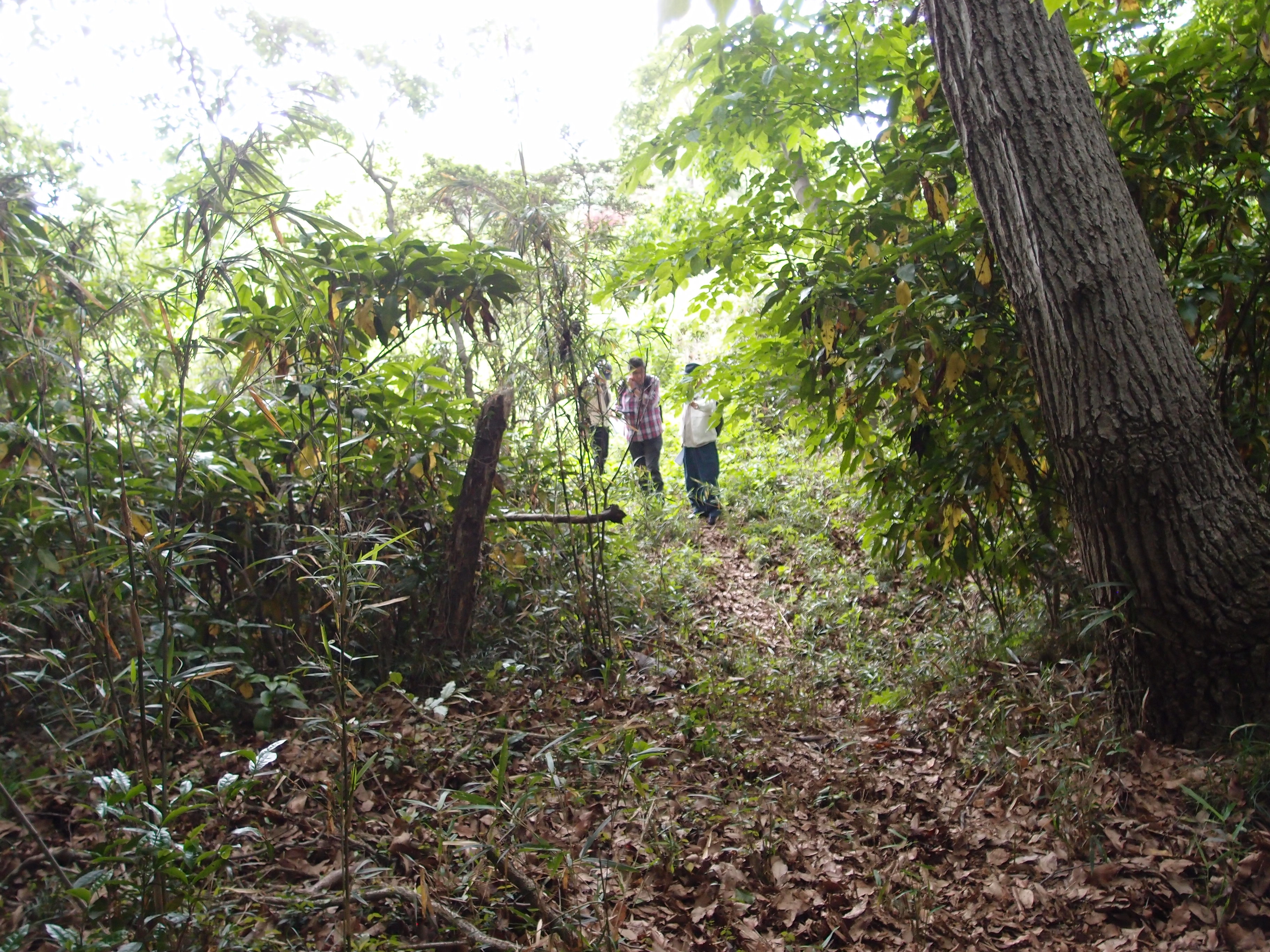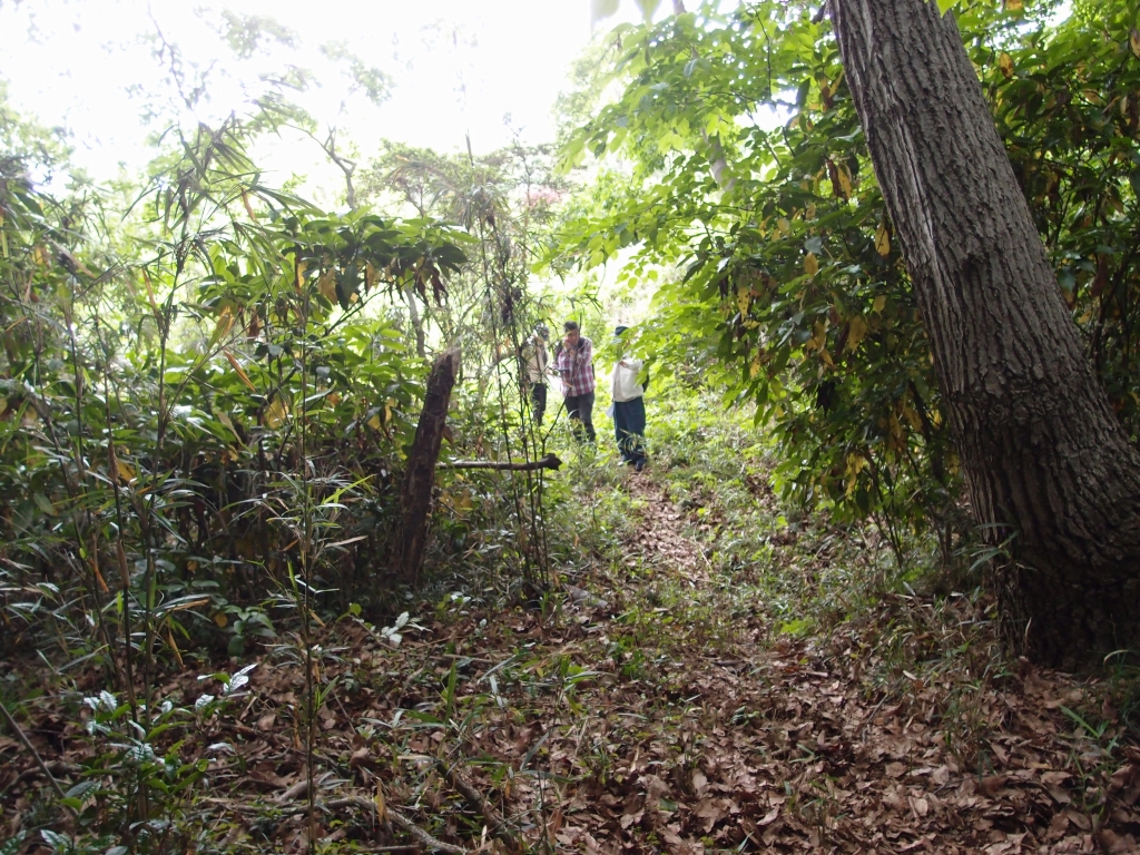 この入口を西の方に入っていくと一長々と穴がつづいていて、壁の面には一鍬一鍬の掘ったときの跡を残している。