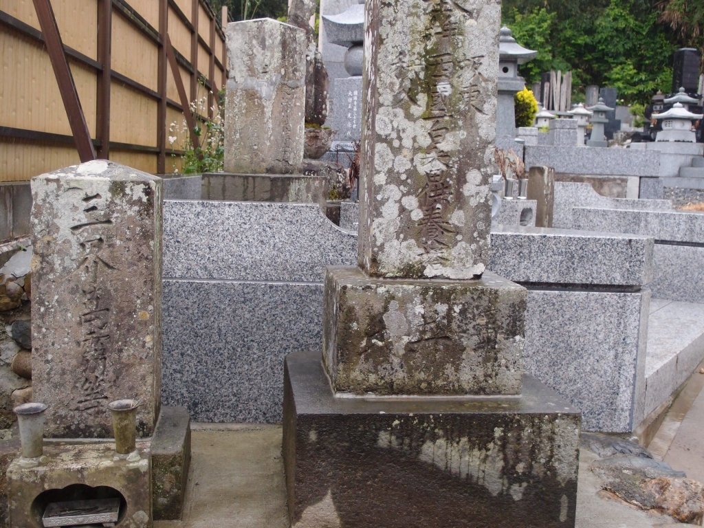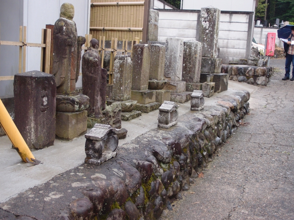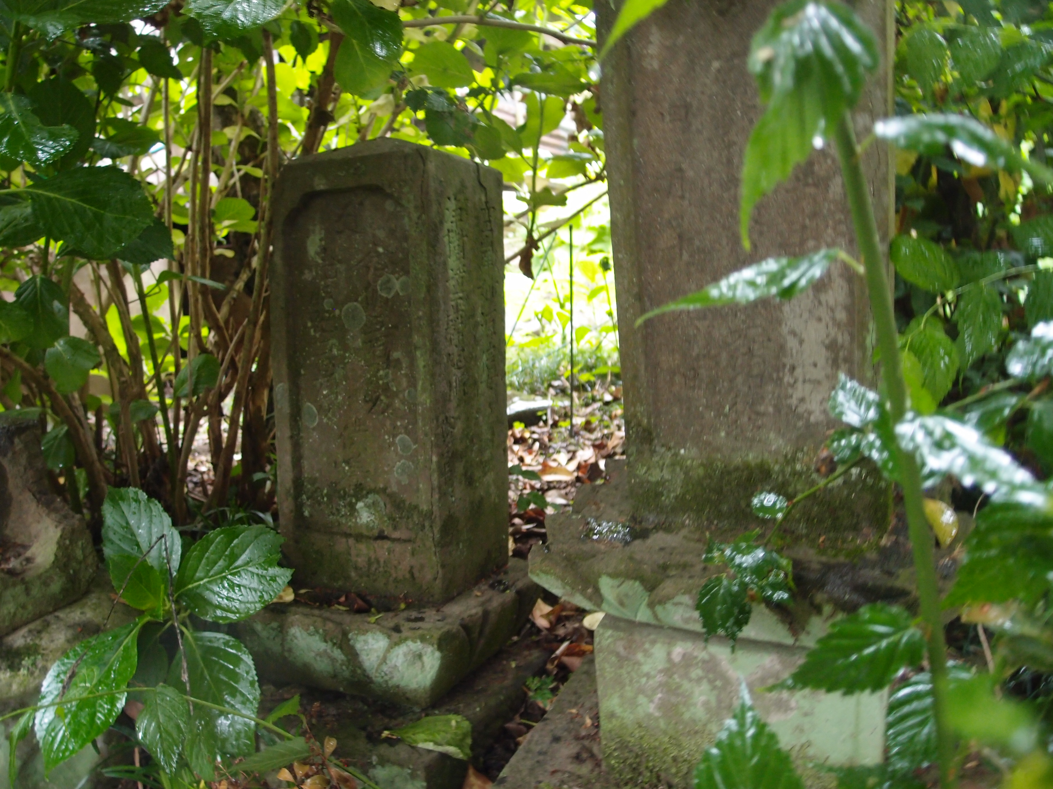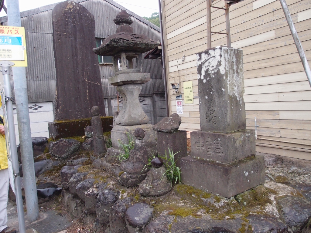 ここの墓碑に「宝蔵院権大僧都海光る法印」延宝二年(一六七四)四月没と記されている。この年月よき二十八年程前にあたる不動明王社造立の棟札に記されている「宝蔵院海光」と同一人物と考える。並んで建つ山伏を刻んだ石仏から想像すると、比較的高い僧であったことが窺える。