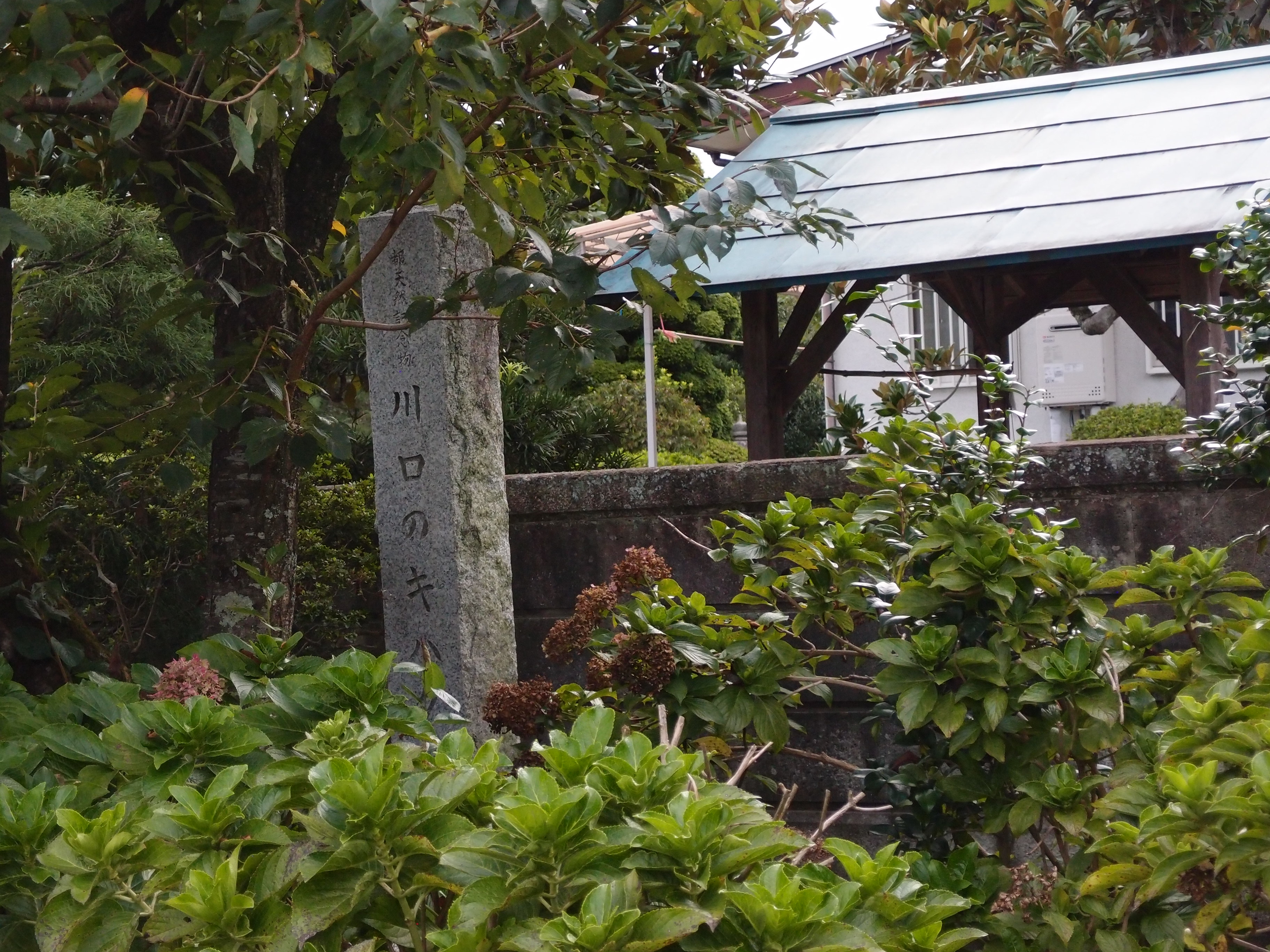 神社の近くの川口川に架かる橋は、重忠橋と呼ばれている。