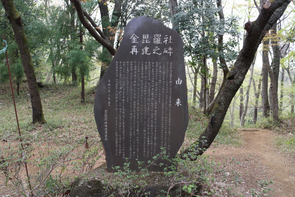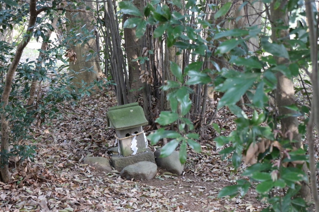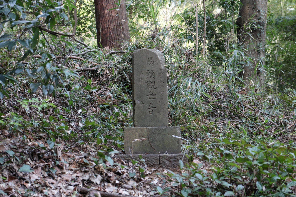 千畳敷から下り、左手の台地の上が三の丸跡で、滝山城祉の説明版がある。さらに少し下ると右手に小宮郭の空堀が現れる。堀の入口には馬頭観音の碑があり、角を左に曲がると三の丸の下の平坦地に朱塗りの小さな社があり、堀割の坂道を下れば城の出口(本来はこちらが入口)になる。