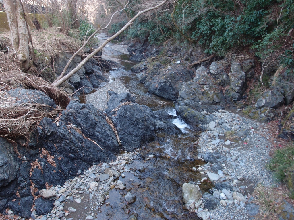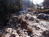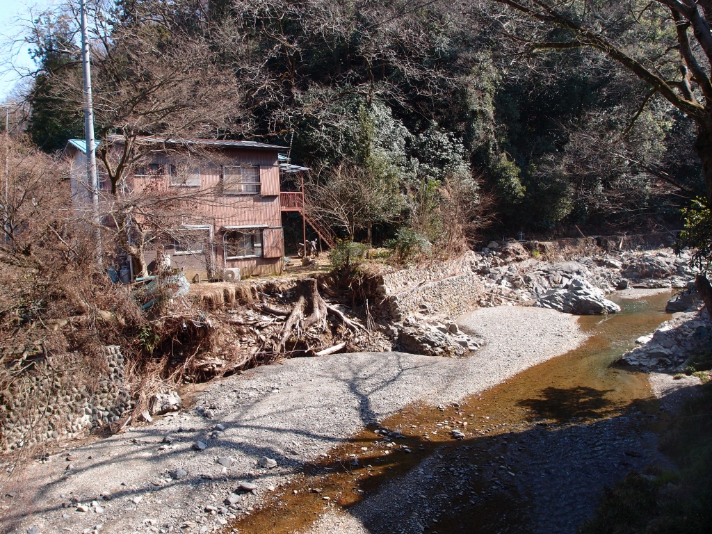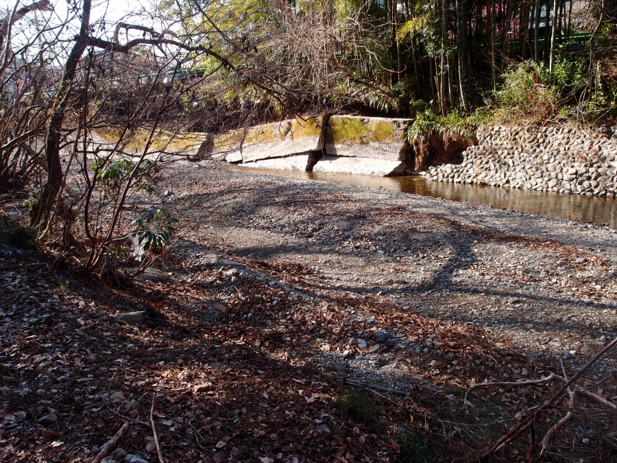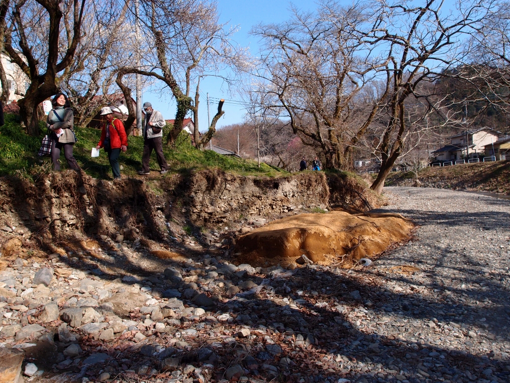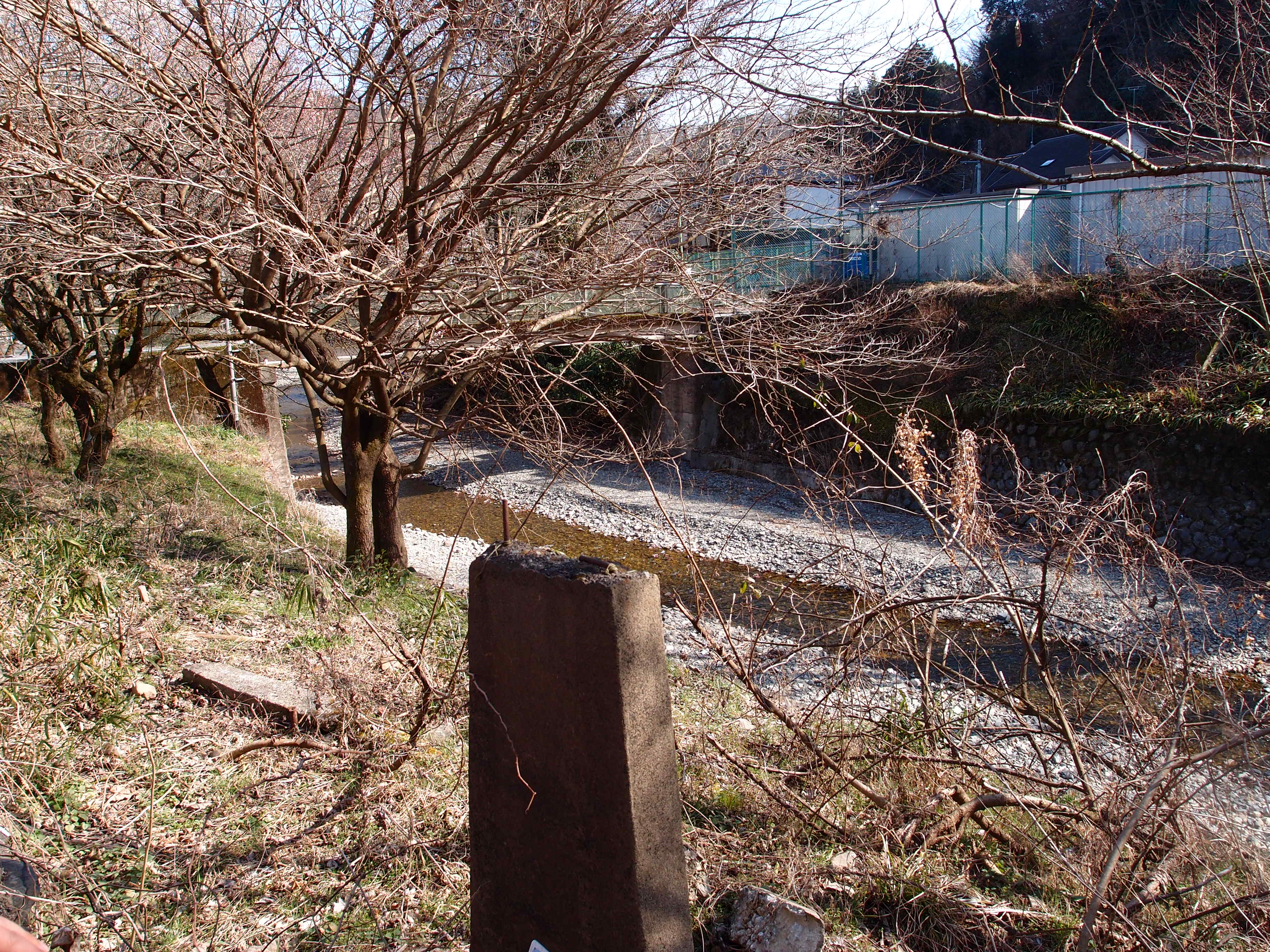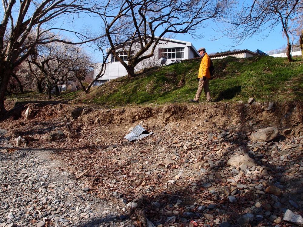 小名路から小仏川の堤防に植えられた梅が美しい遊歩道だが、2019年の水害で小仏川の河道は大きく変化していた。
