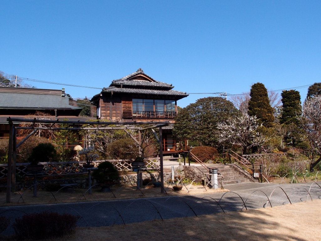 新・旧甲州街道が分岐する交差点から200mほど西に進んだ南側に駒木野病院がある。病院の手前には道を挟んで風情のある建物が目に着く。建物の入口には、「高尾駒木野庭園」とある。この建物は、大正時代から昭和初期に建てられたもので、駒木野病院の前身である小林病院の住居を兼ねた建物であった。この病院の医師で、100歳で他界した小林清子さんが八王子市に寄贈し、現在はNPOが管理している。建物の南側の敷地には890坪に及ぶ池泉回遊式や枯山水の日本庭園がある。