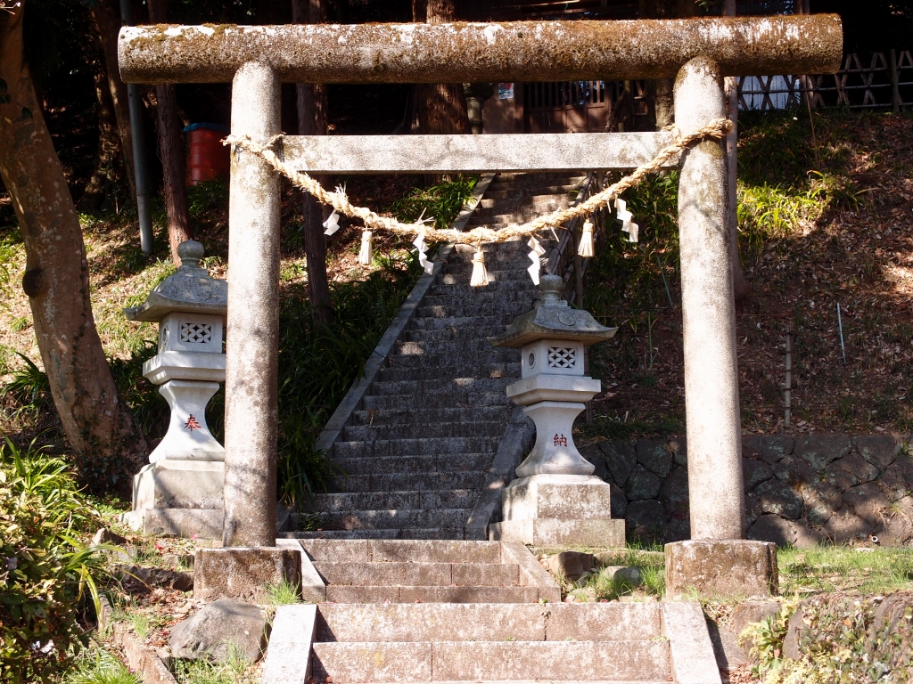 小仏関跡の北側、JR中央本線の陸橋を渡ると鳥居があり、鳥居をくぐり階段を登ると、正面に神明神社、右に離れた場所に古峯神社と稲荷神社が祀られている。