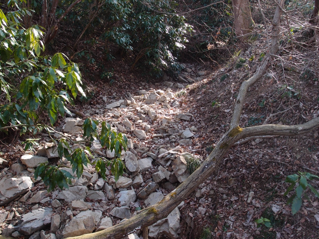 天満宮への道は、近くの尾根に続いており、この尾根が伊能図に描かれた高尾山の登山道の位置とほぼ一致する。