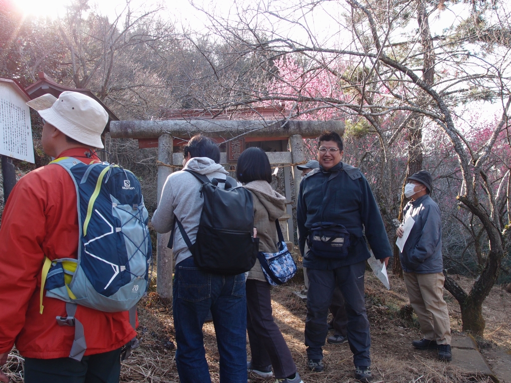 高尾天満宮が祀られている梅林。伊能忠敬の測量隊が天満宮近くの尾根を測量している。