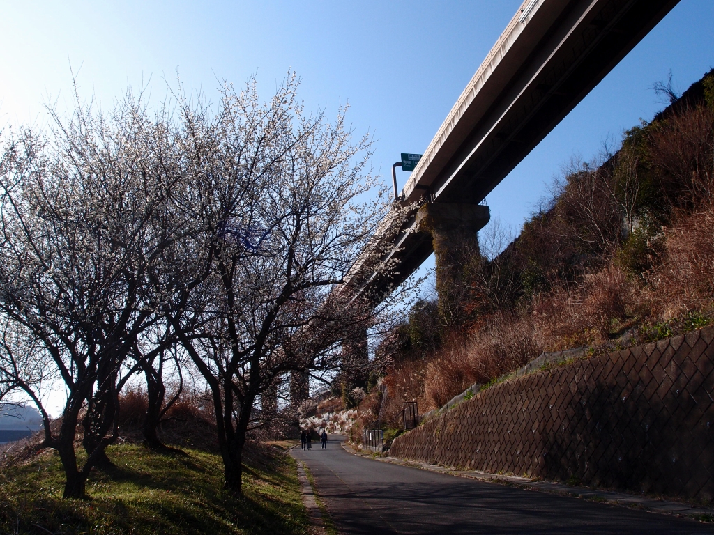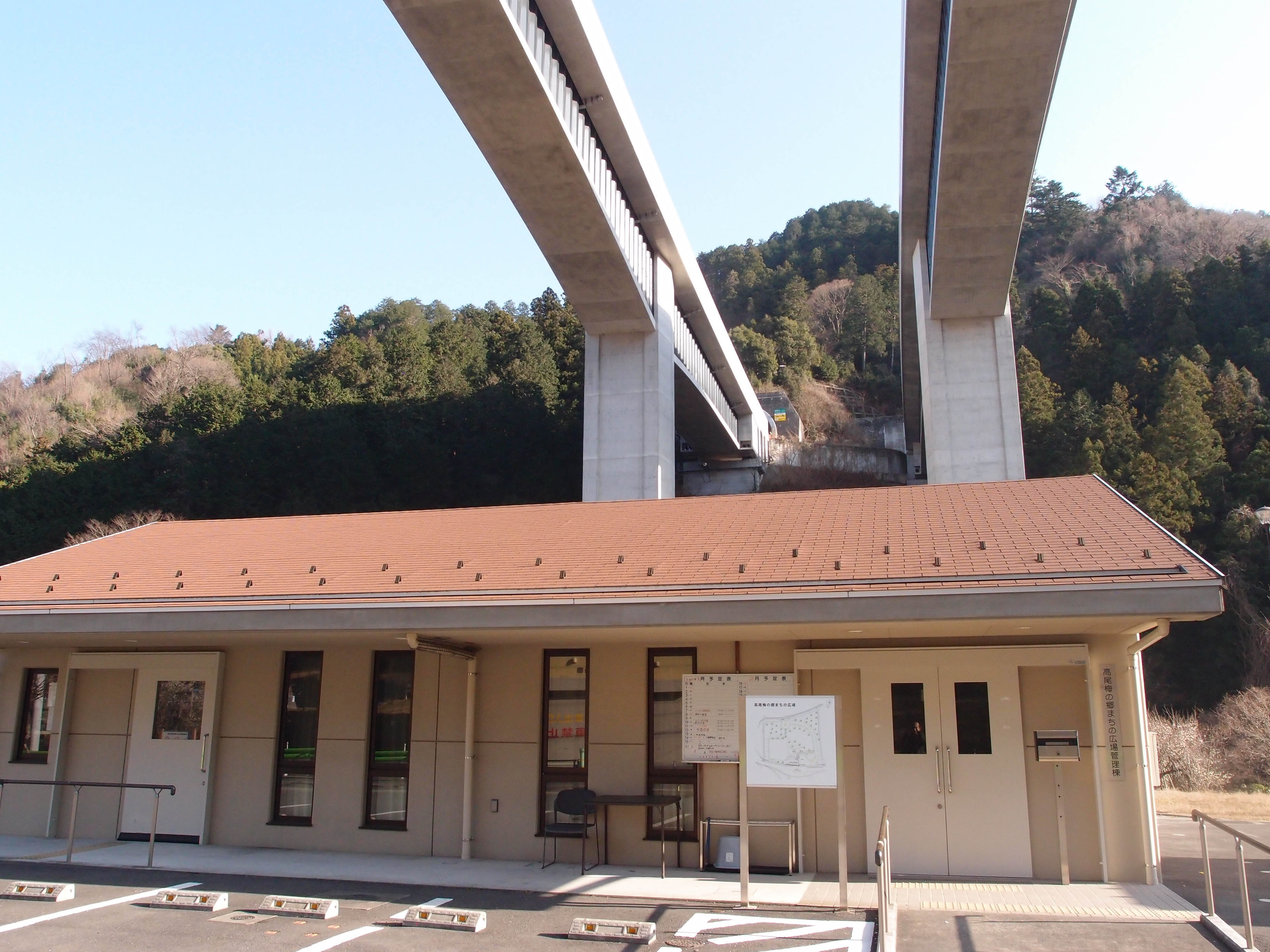 圏央道の高い橋脚の下の広場。トイレ施設があり梅郷を散策する時の休憩所に利用できる。