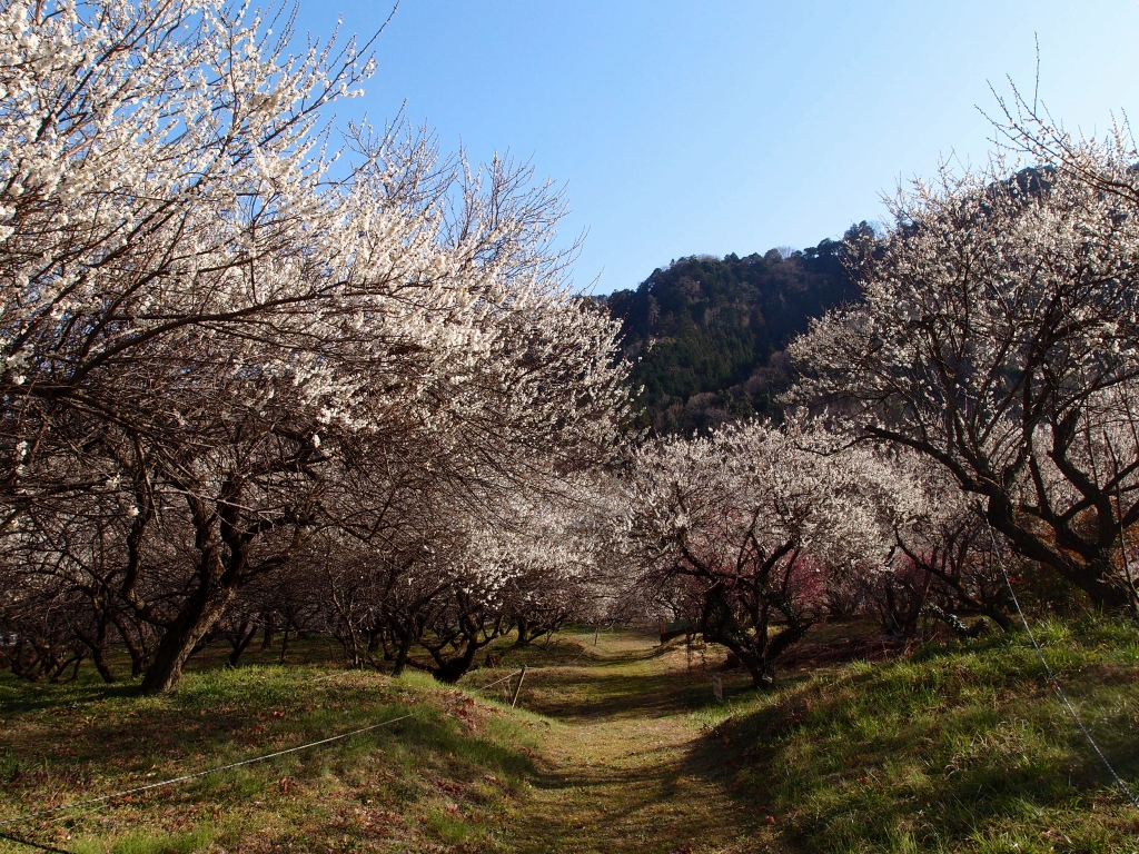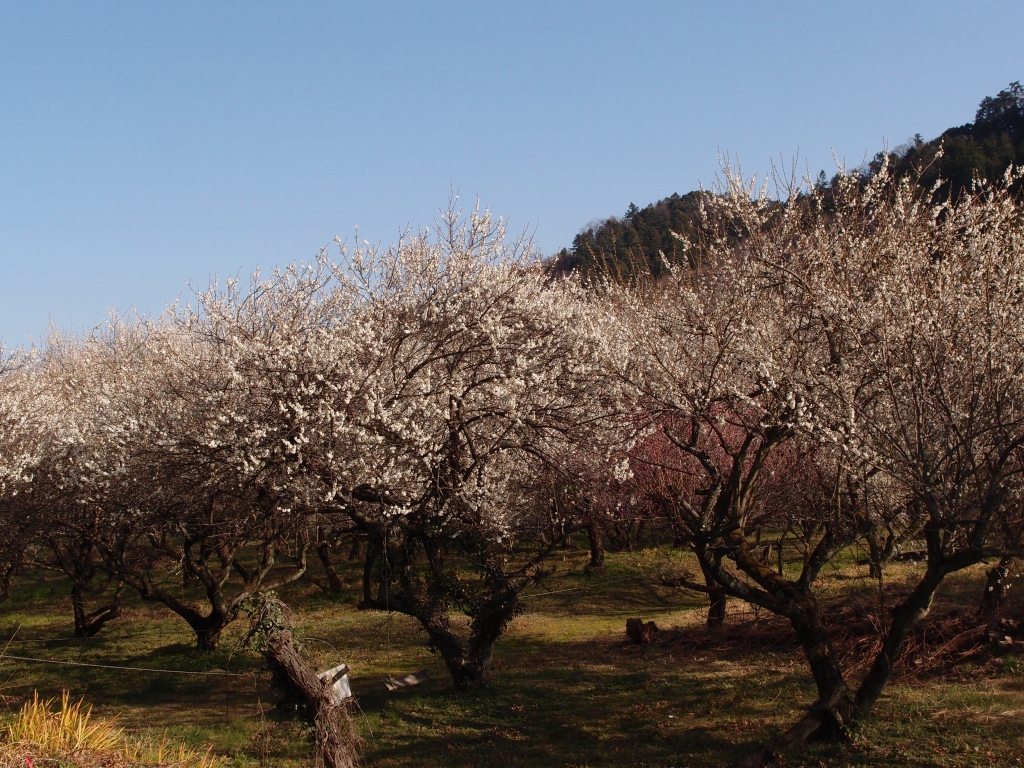 新井地区の山沿いの斜面一体に植えられた梅林。