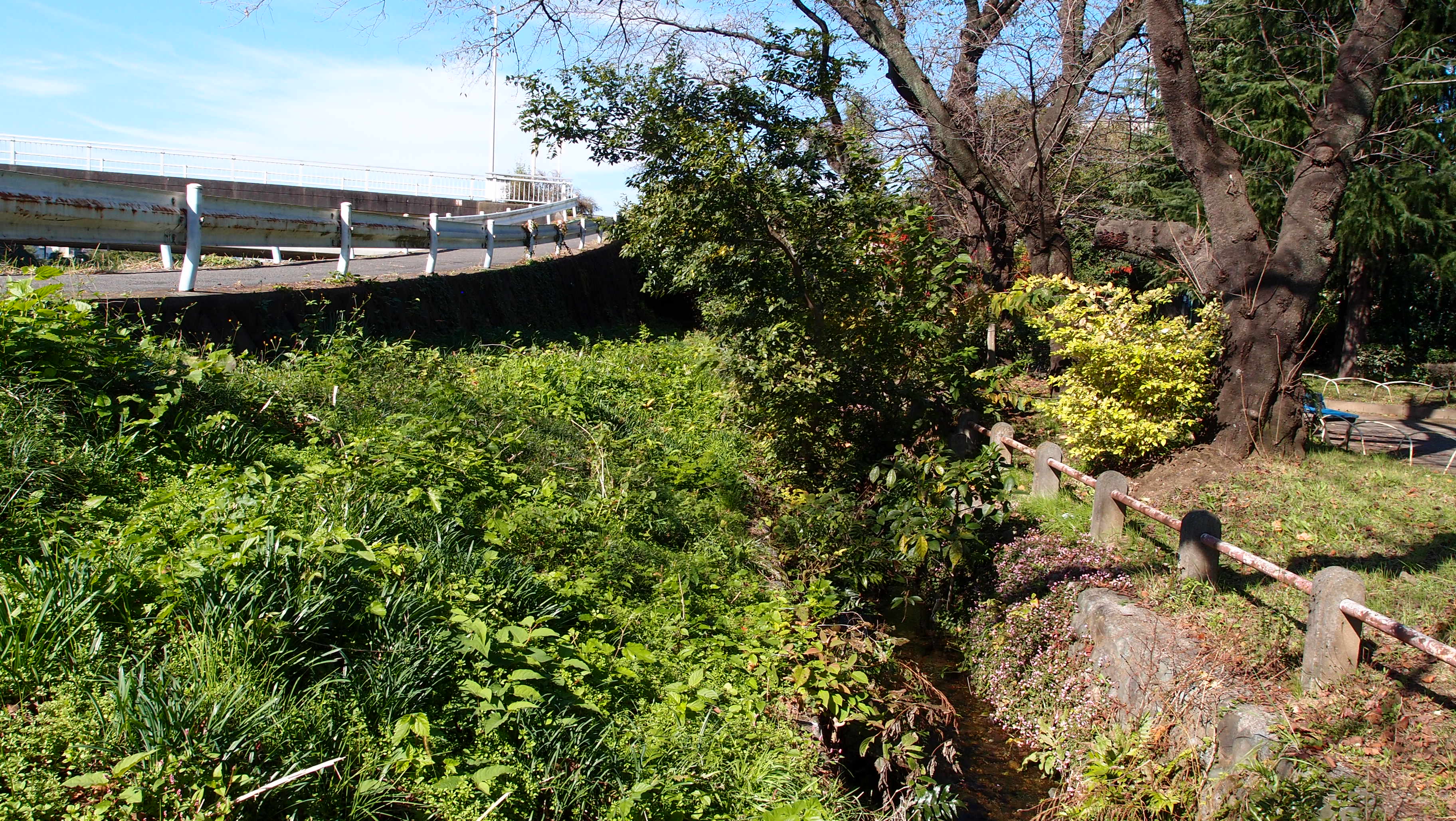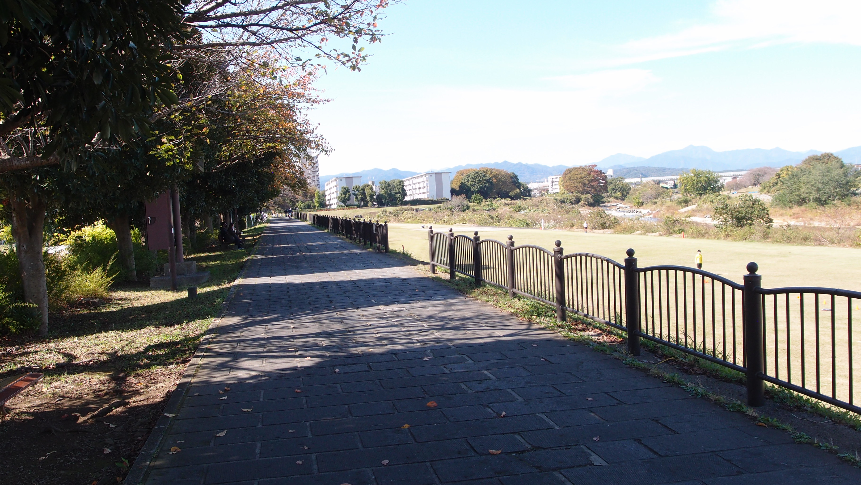 浅川大橋近くの左岸堤防沿いにあり園内には桜が多い。堤防と公園の間には、旧川道の水路がある。