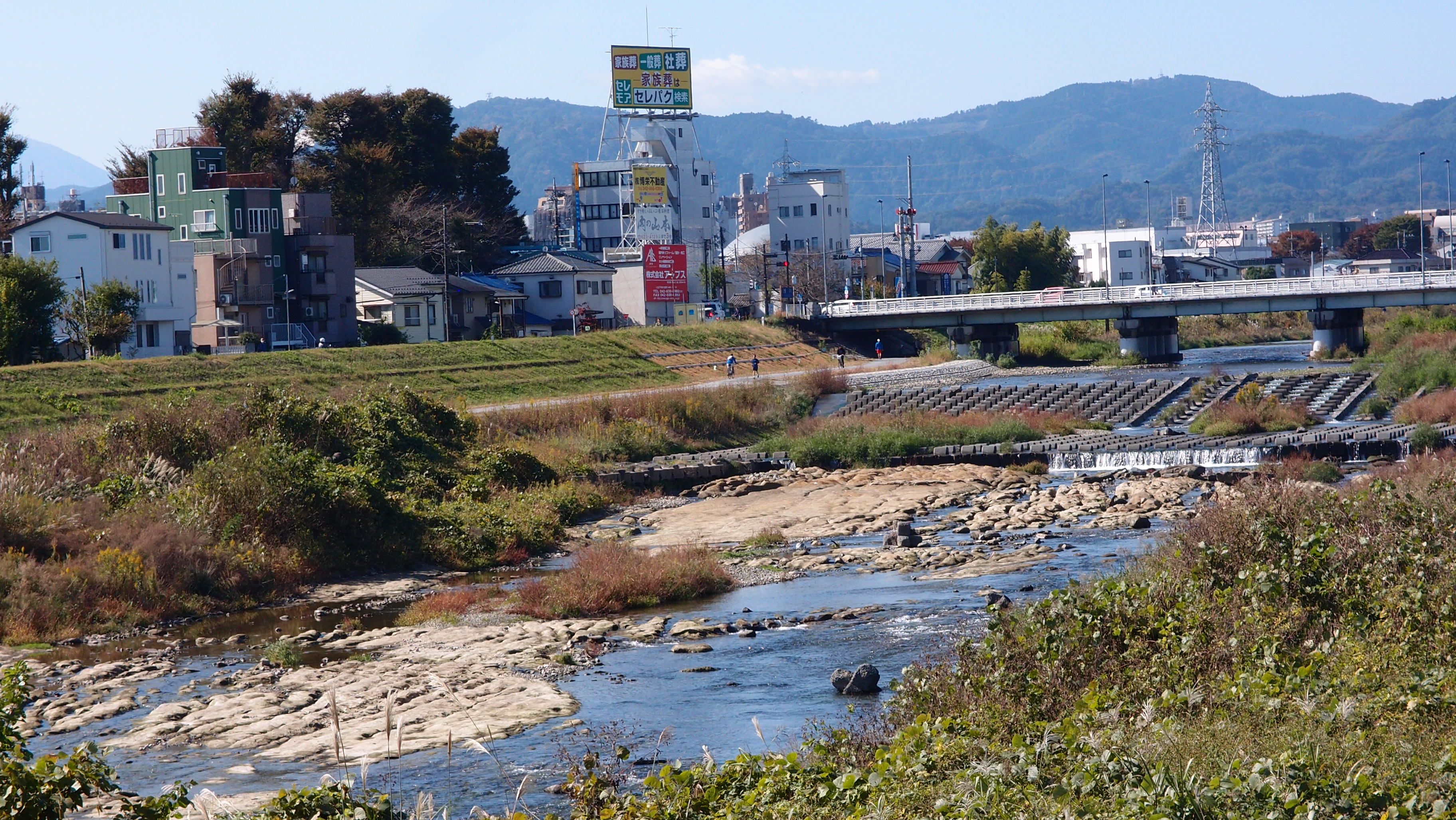 散策コース:京王八王子駅→大和田橋→浅川大橋→暁橋→川口川合流地点→浅川橋→鶴巻橋(八王子市役所)→南浅川合流地点→水無瀬橋→JR 西八王子駅