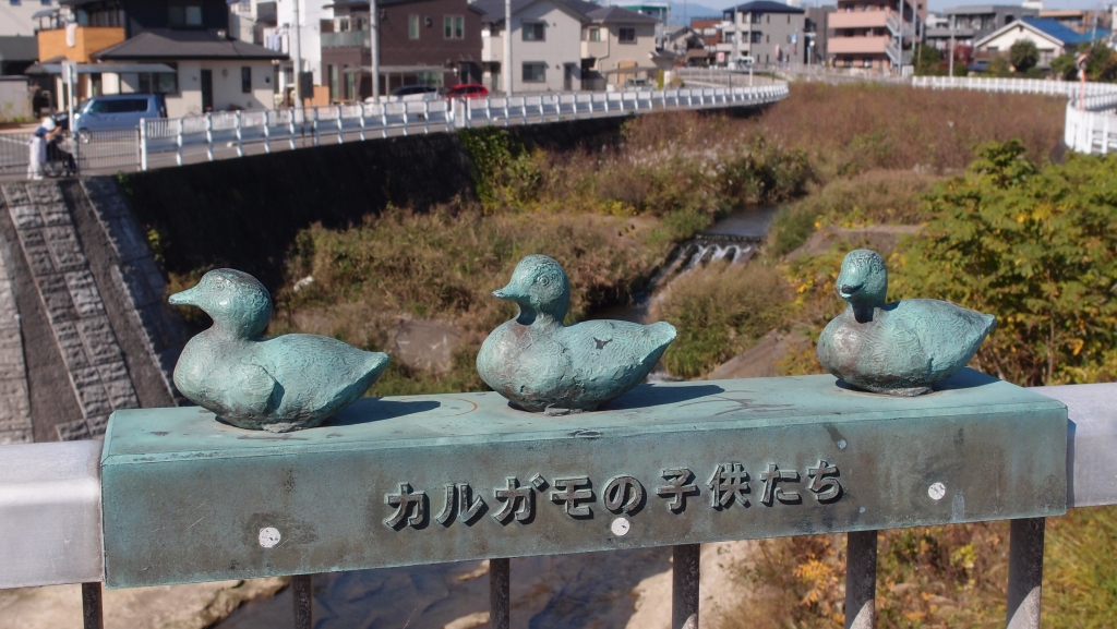 浅川橋の左岸下流で川口川が浅川に合流する直前に川口川に架かる橋。欄干には鮎やカルガモなど、川辺に見られる鳥や魚の彫刻が乗る。