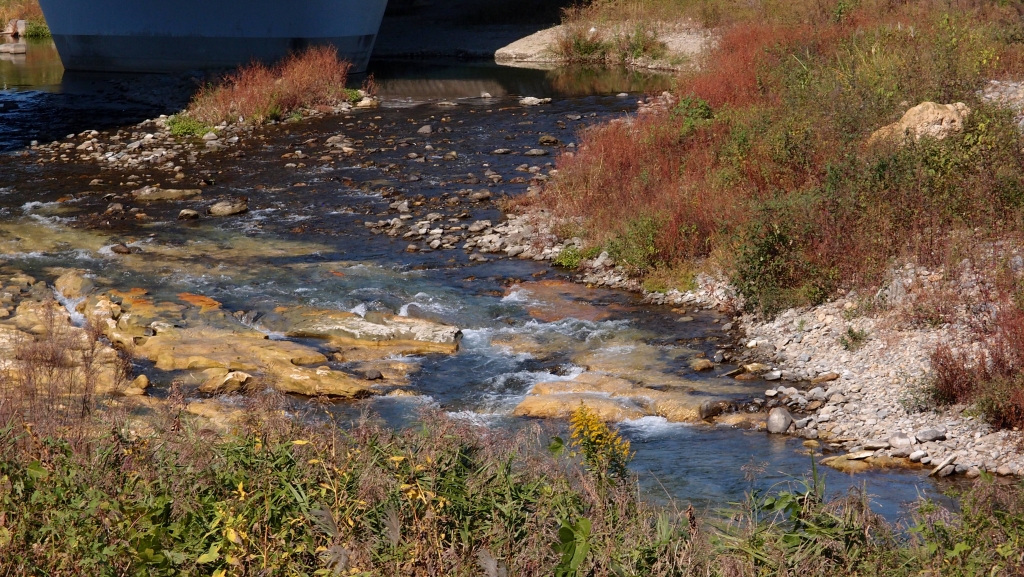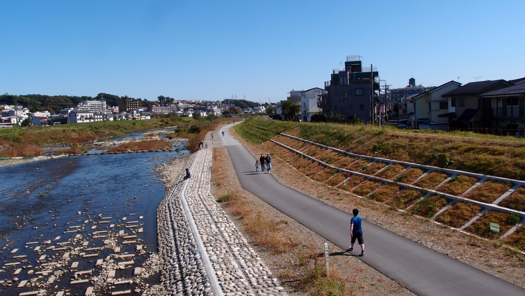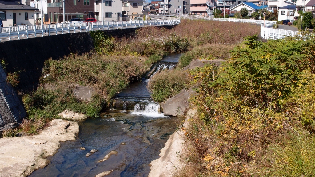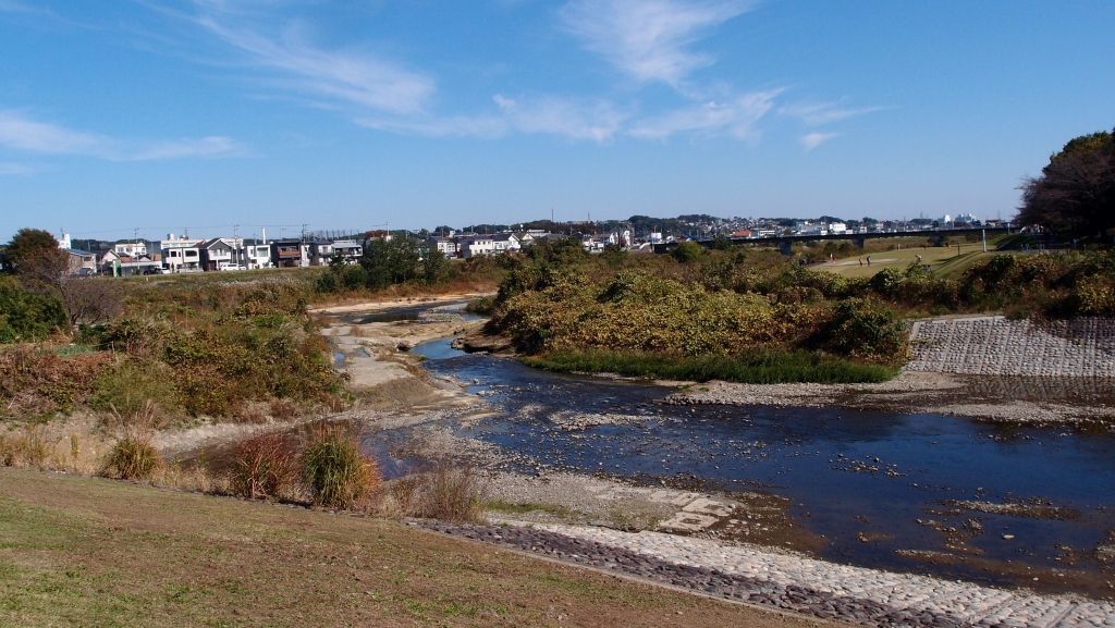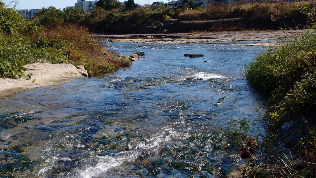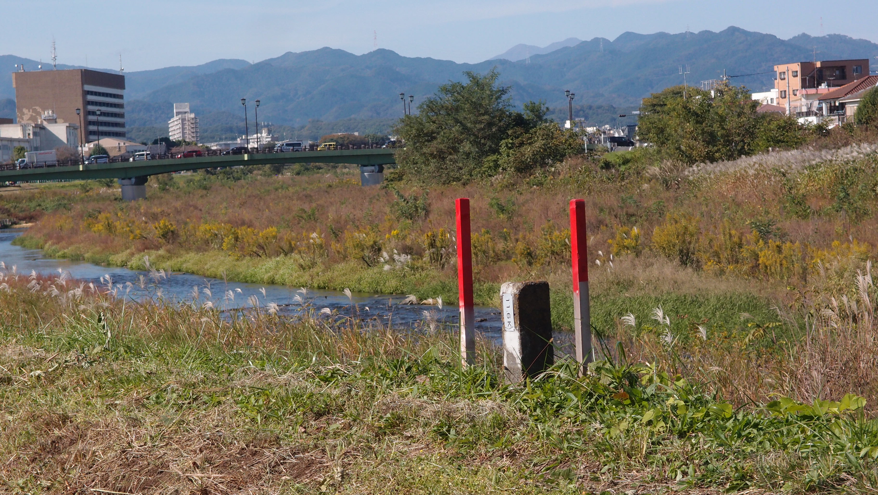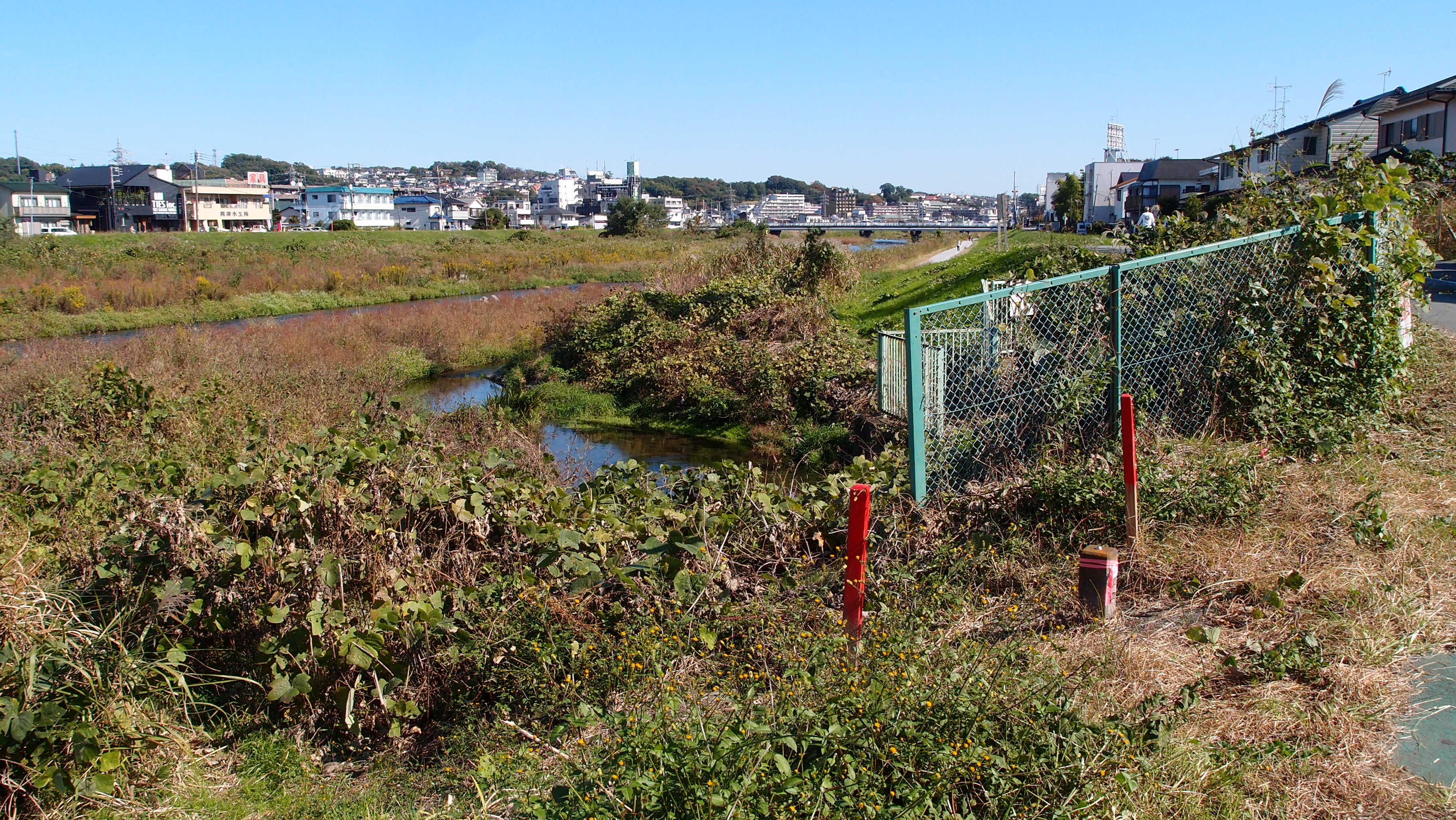 この部分から南西は連続堤防により南浅川の流入を防いでいるが、北東に向かっていた川の流れはここに作られた川除堤防によって北寄りに曲げられ、そこから右岸側に作られた連続堤防によって浅川との合流点ではほぼ直角に合流している。水無瀬橋から下流の自然堤防(河岸段丘)の状況からは、本来南浅川が幅広い河川敷を作っていて現在の合流点から