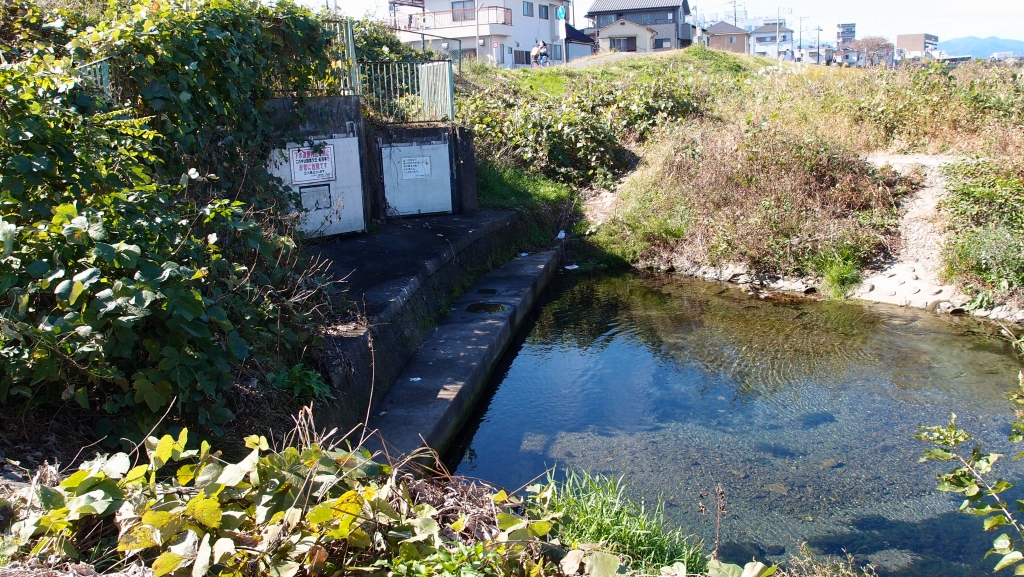 「昔、弘法大師が諸国を巡歴してここに通りかかったとき、大師は永い行脚の疲れでのどの渇きを覚えていた。川のほとりに茅葺の家が一軒あったので、大師はそこに立ち寄り水をもらおうとしたが、この家に住む老婆は「夏は水汲みが苦労だから安々と飲ませるわけにはいかない。」と言って一杯の水さえ与えようとしなかった。仕方なく大師は川に降り喉を潤し、何事か呟いて何処へか立ち去った。その後、川の水は大師が下りたところから上下二、三町の間地面を潜って流れるようになったという。」