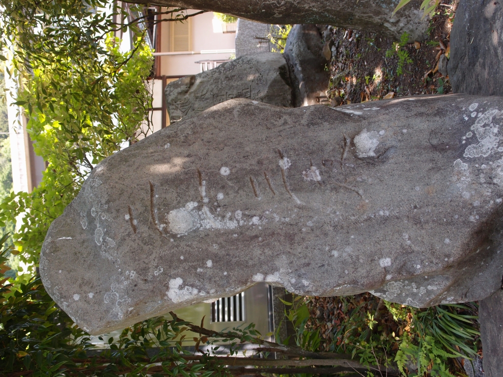 延暦十九(800)年、粟聚山炎焼、改富士山開東高間ケ原者、行基菩薩山居之辺也。富士浅間両山遥拝有霊石也。后号富士野関、復改小仏之関、天台道命法師有山居跡。同所安置山宮也。即富士山午王者、行基菩薩の真筆也雖然、度々依野火愁、印刻也欲磨滅。近頃大壇那之某、小仏山依秘在宝筐者也