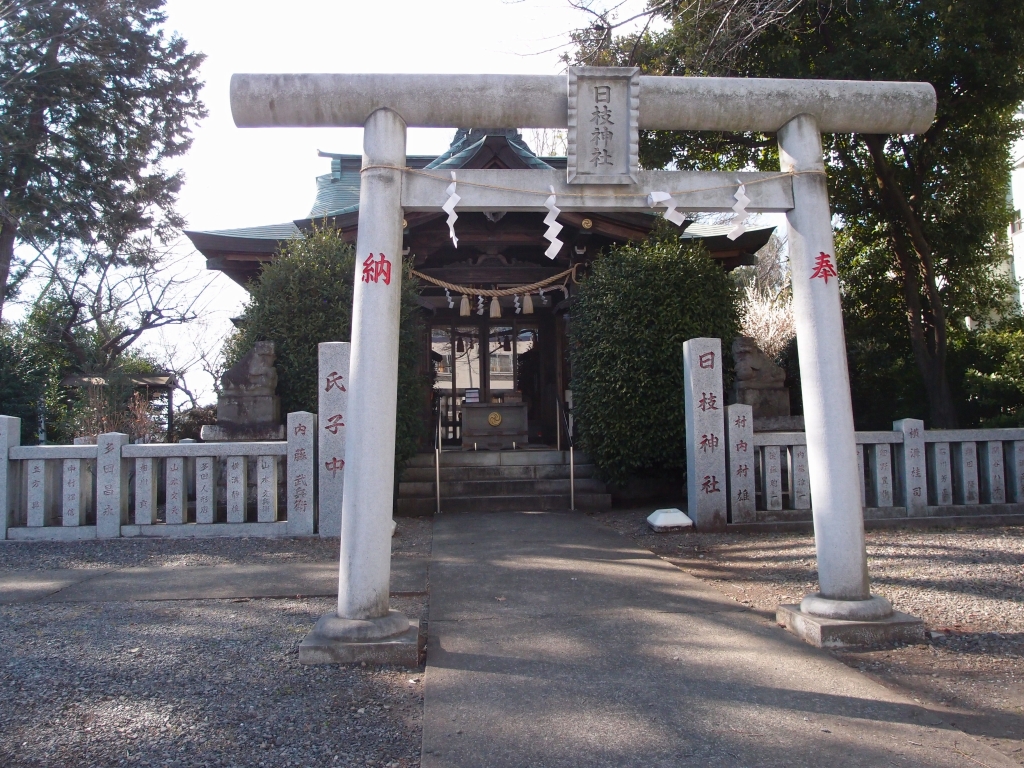 甲州街道が日野台地に上がる坂の上に「日枝神社」がある。慶安 2(1649)年 10 月に徳川家光から高五石の寄進と御朱印を賜うと伝えられている。富士山を背に八王子市街が一望できる高台にあり、江戸時代から甲州街道を行き交う人びとが参詣したといわれている。