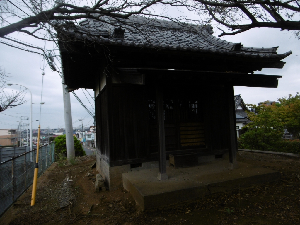 そこから歩道橋で八高線を渡り、北に向かうと、すぐに東福寺に着く。振り返ると、東福寺に接して八坂神社の小さな社殿が目に入る。これらの社寺は、南の八高線が走っている面より一段高い段丘の縁にある。