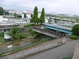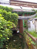 お茶屋の松の前の道を西に向かい、工場の北の道に出たところが、旧谷地川が多摩川に合流する地点だそうで、今も水路のような小川がある。(2013 05