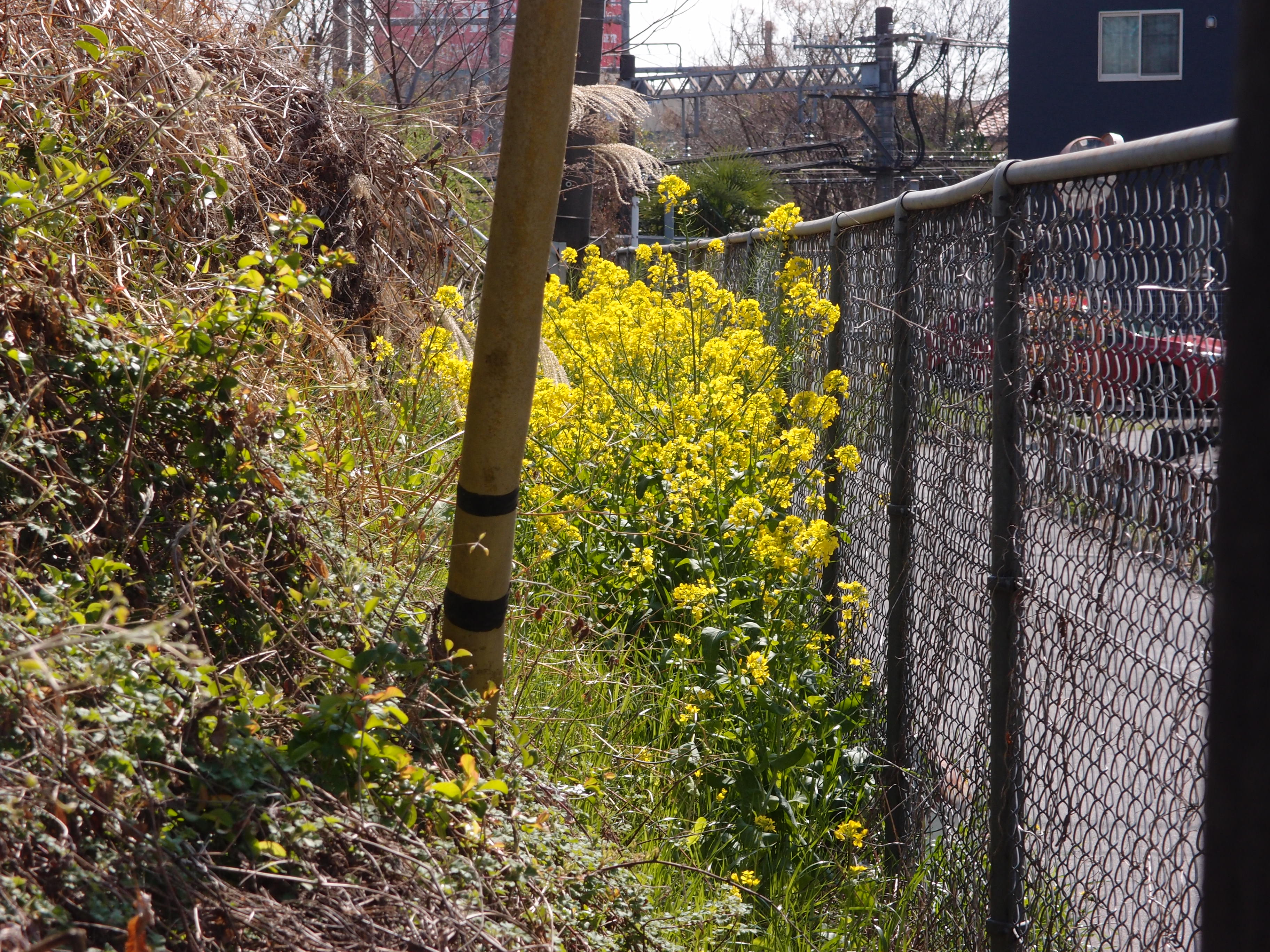 線路の盛土に咲く菜の花