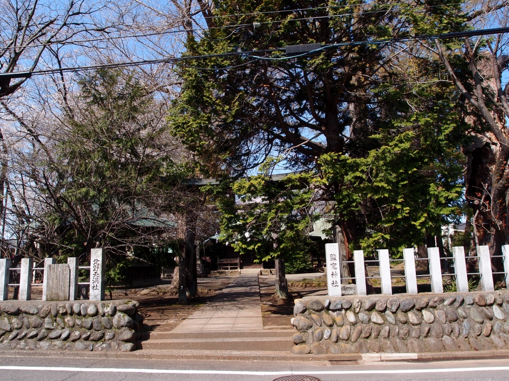 北野天満社は、京都の北野天満宮から分霊されたと伝えられ、「北野」の地名は、この神社の名前に由来するという。