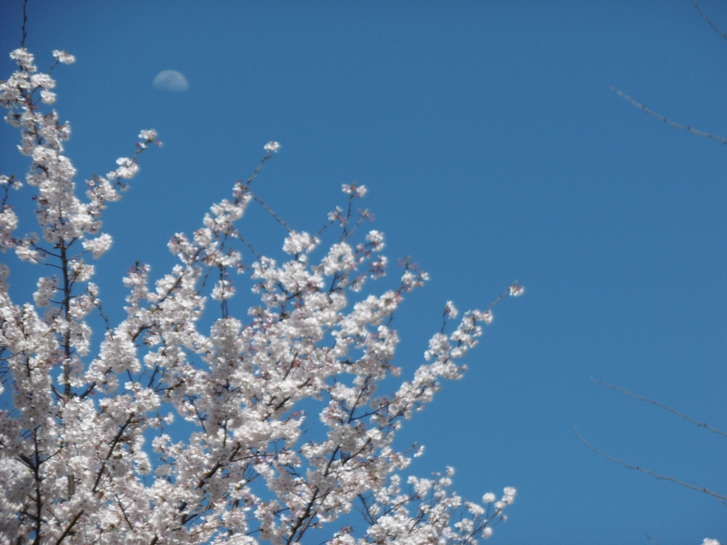 団地内の桜と下弦の月