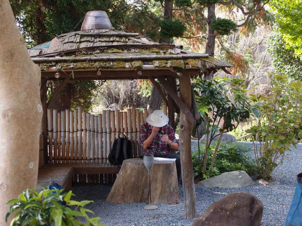 池の背後の崖線からは豊富な湧水が流れ出ている。