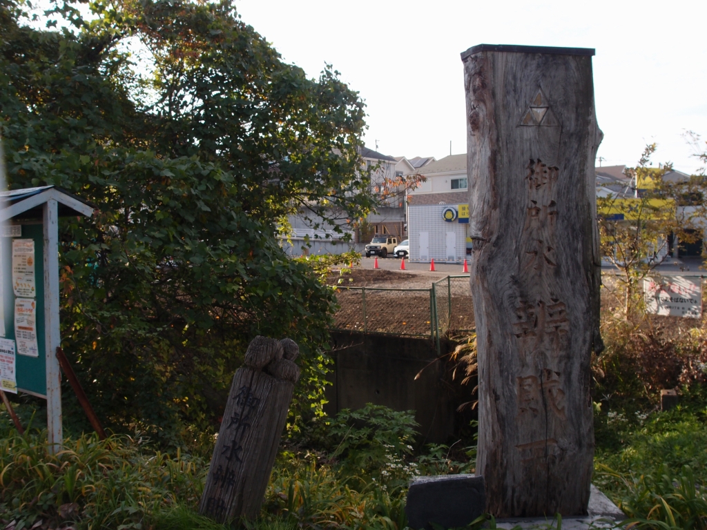 この付近は、江戸時代に御所水村(新横山村の枝村)と呼ばれていた。御所水はここにあった湧水を指す。「御所」は、ここに散田の真覚寺にある「高宰神社」に祀られている公卿の屋敷が近くにあったことによるという説と甲斐の武田滅亡後、武田信玄の娘松姫等がここに住んだことによるという説がある。池からの水路が今も谷沿いに見られ、西八王子から富士森公園に向かう御所水通り沿いに北流し、高校の辺りから東流して、かつては大久保長安陣屋跡につづいていたという。第17回(2016 03 13)に訪れている。